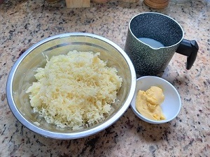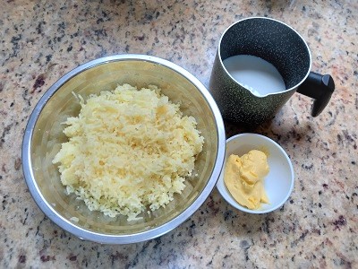 Usa leche completa tibia y mantequilla fría para un puré cremoso.