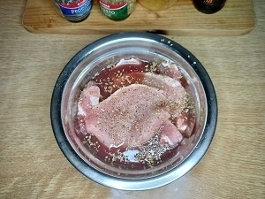- 5 o 6 filetes de lomo de cerdo de un grosor de medio centímetro aproximadamente (serían unos 500 o 600 grs)