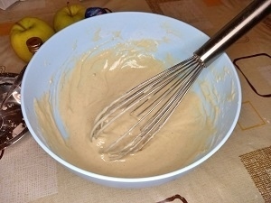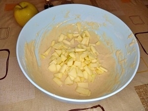 Paso 3: Pela y pica las manzanas en pedacitos pequeños e incorporarlos a la masa y mezcla bien.