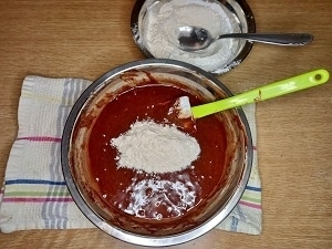 Paso 5: Agregamos el polvo de hornear y la sal a la harina. Luego la incorporamos poco a poco a la mezcla y mezclamos bien hasta integrar perfectamente antes de seguir agregando harina.